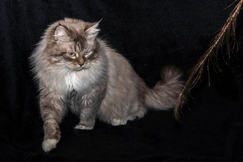 - ♀ Velvet Félin d'Artémis: en anglais, cela signifie velours. Sa belle couleur noire a de suite fait penser à ce beau tissus doux, brillant et élégant. C'est ainsi que Mélinda s'imagine un sibérien de cette couleur. Ses adoptants ont choisi pour elle le nom de Virginie.